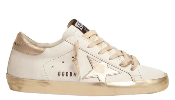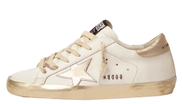 Women’s Super-Star with gold sparkle foxing and metal stud lettering